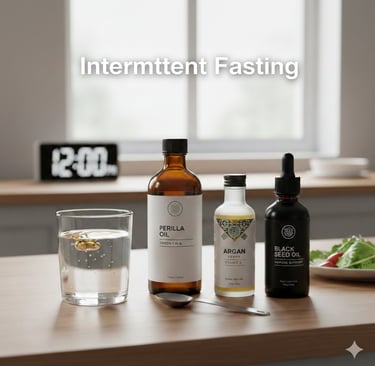 During my fasting period in the morning, the very first thing I do after waking up is drink a glass of water mixed with a tablespoon of one of these three oils: Perilla oil, Black Seed oil, or Argan oil. Each offers unique benefits, as listed below.